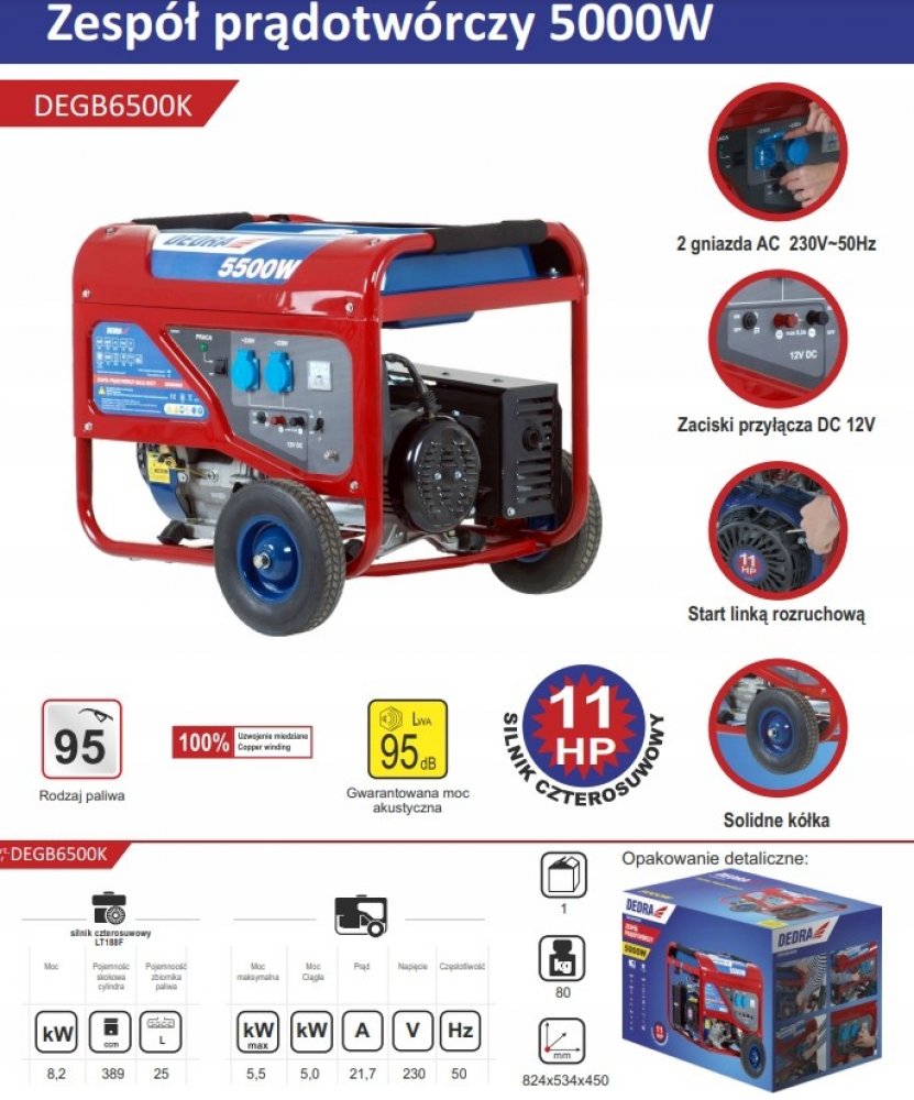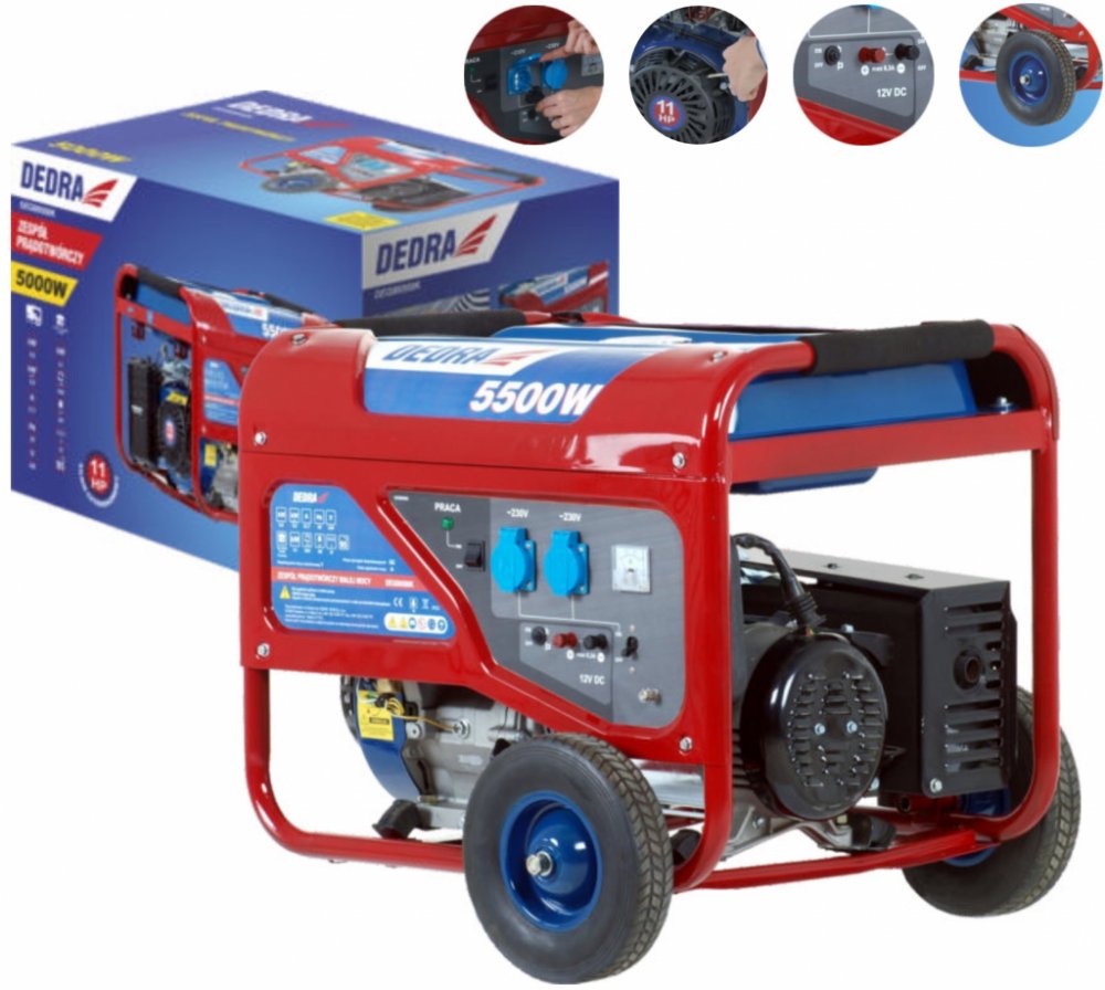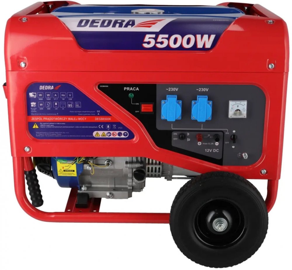 Dedra čtyřtaktní benzínové 5000 W 80 kg jednofázové manuální 95 dB(A) červené