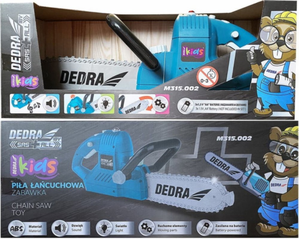 Motorová pila na baterie DEDRA M315.002 je skvělá hračka pro nejmenší kutilySvým vzhledem a funkcí připomíná skutečnou řetězovou pilu, a proto hračka umožňuje dítěti rozvíjet nadšení k práci, poznávat svět nářadí a učit se principům jejich fungování již od útlého věku. Hračka je vyrobena z kvalitního a bezpečného ABS plastu - odolného proti poškození. Hračka je opatřena zvukovou kulisou imitující chod motoru a kontrolkou - díky tomu se zábava stane realističtější, a tím pro dítě hodnotnější a...