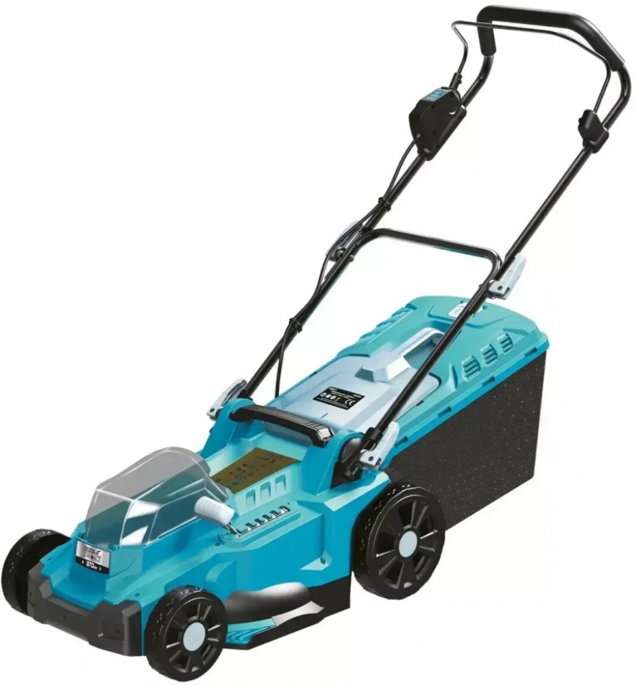 Tento stroj je určen k sekání a péči o trávník. Je poháněn robustním bezkartáčovým motorem a funguje na dvě 18 V baterie. Tato konstrukce umožňuje velmi tichý provoz. Se šířkou záběru 370 mm je ideální pro malé až středně velké zahrady. Díky kompaktní a lehké konstrukci a velkým kolům se s ním snadno manévruje. Výška sekačky je centrálně nastavitelná v 6 polohách (25 - 75 mm). Sekačka je vybavena funkcí mulčování/drcení, která snižuje objem trávy. Skládací rukojeť a síťový koš usnadňují skladování a přepravu. Bezpečnostní spínač a přídavný klíč chrání před náhodným spuštěním.