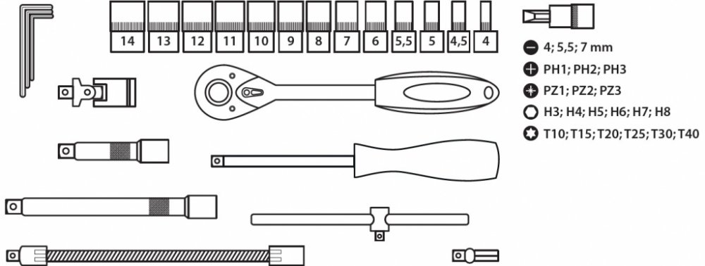 Klíče, bity jsou vyrobeny z chromované vanadové oceli. Jsou kované a velmi pevné. Povrch je galvanizován tak, aby postupem času v běžných podmínkách provozu nekorodoval. Otvory v násadkách jsou broušeny metodou vibrací a jsou tedy vyrobeny s vysokou přesností. Výrobek ...