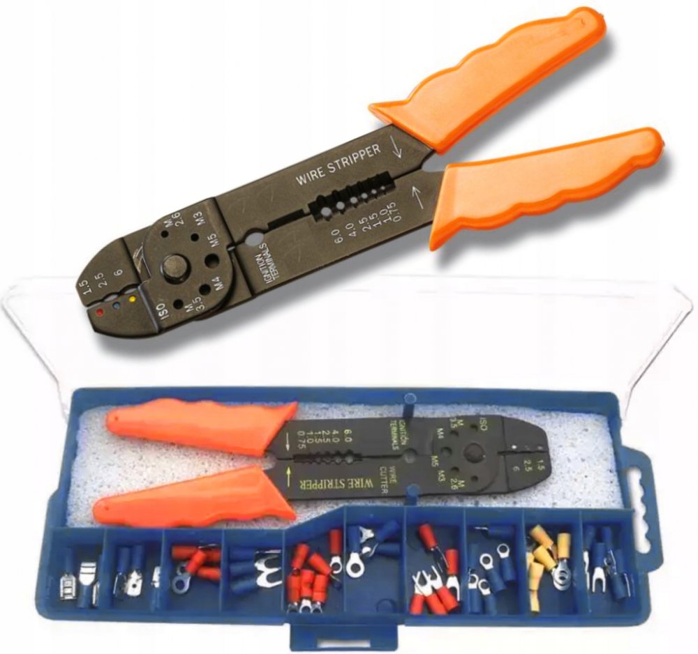 KLEŠTĚ NA KRIMPOVÁNÍ KONCŮ KABELŮ, KRIMPOVACÍ POUZDRO S VÝBĚREM TERMINÁLŮ