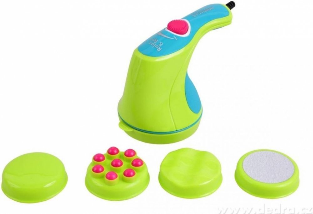 RELAX & SPA 5in1 všestranný masážní přístroj s pěti nástavci (pemzový, plochý, kuličkový, zvlněný a nástavec ze síťoviny).