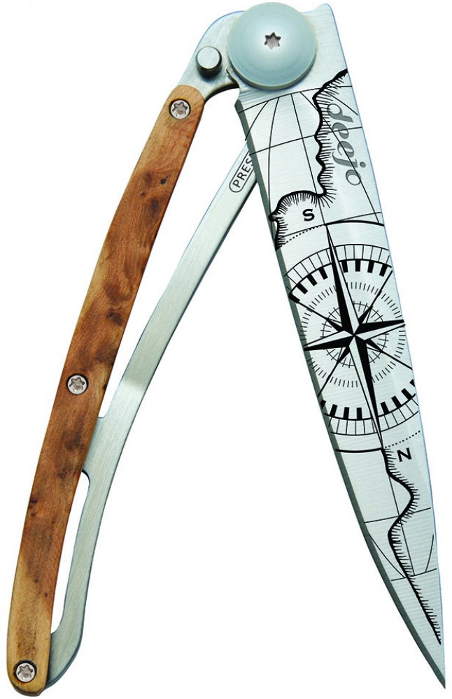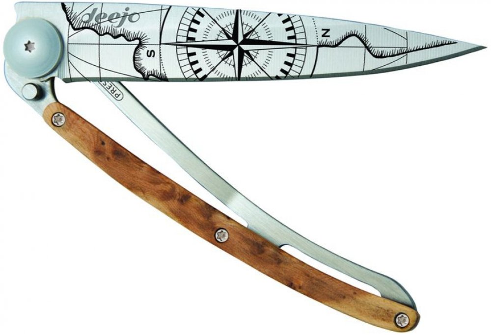 Stylový ultralehký nůž Deejo se střenkou z kořene exotického jalovce - speciální limitovaná edice pro leváky.