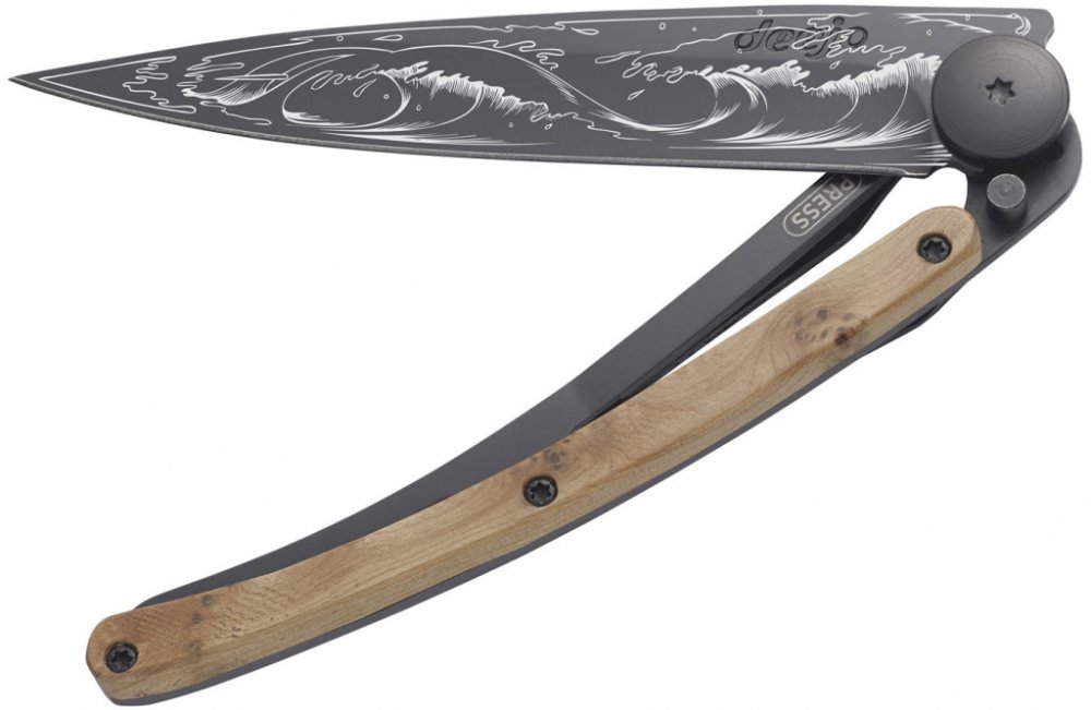 Deejo zavírací 95 mm 205 mm 37 g nerezová ocel Z40C13 pro náročnější úkony (≥ 9 cm) do běžně velké kapsy Jalovec, nerezová ocel s vysokou odolností proti vlhkosti s hladkým ostřím