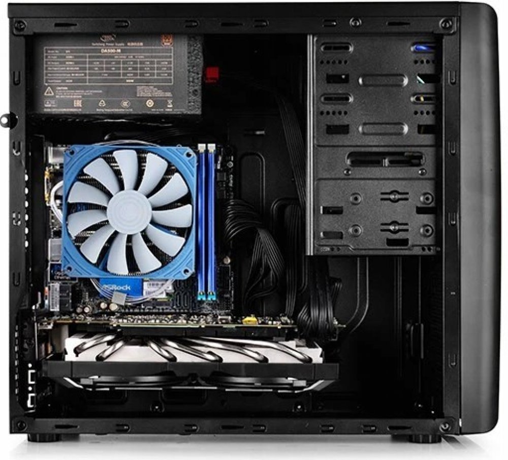 Počítačová skříň formátu Mini Tower nabízí dostatek prostoru pro uložení až tří disků, základní desky do velikosti mATX a až tří ventilátorů. Na horním panelu se nachází port USB 3.0, USB 2.0, sluchátkový výstup a audio vstup pro mikrofon. Ve skříni je dostatek prostoru pro chladič CPU do výšky až 166 mm a grafickou kartu o délce až 320 mm. Skříň je dodávána bez zdroje. Součástí skříně je také integrovaný prachový filtr.
