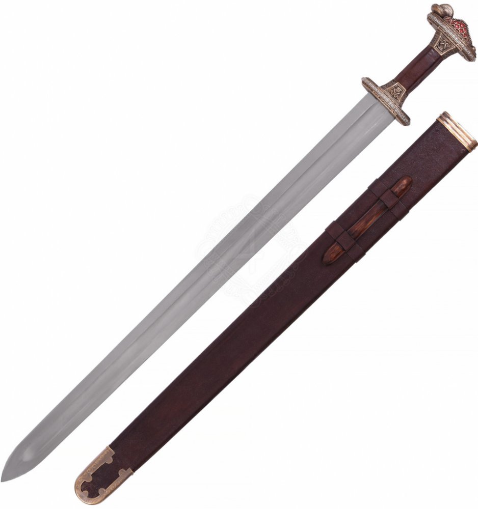 Tento jednoruční meč z období Vendel je dodáván s hnědou pochvou s dřevěným jádrem potaženým kůží a dřevěným poutkem na opasek (max. šířka opasku 5cm) a obústkem a nákončím z patinované mosazi.