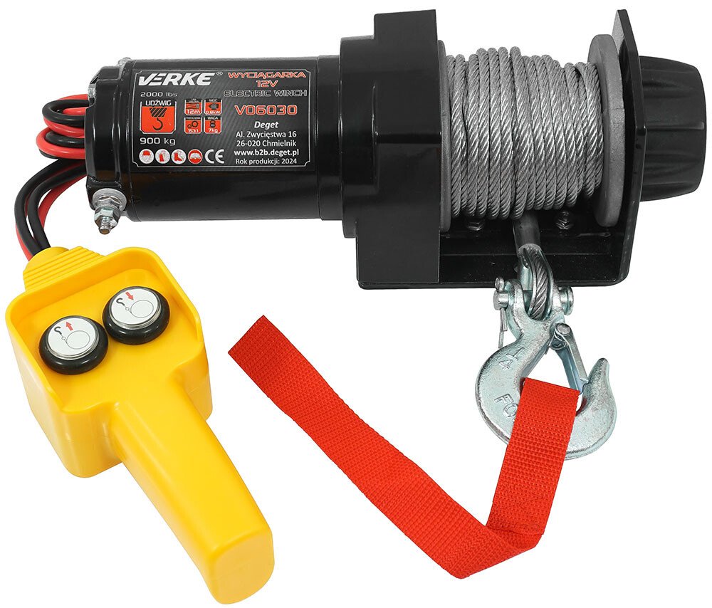 DEGET Elektrický lanový naviják 12V, 2000 LBS, 12m, Verke V06030, Barvy a parametry Černá