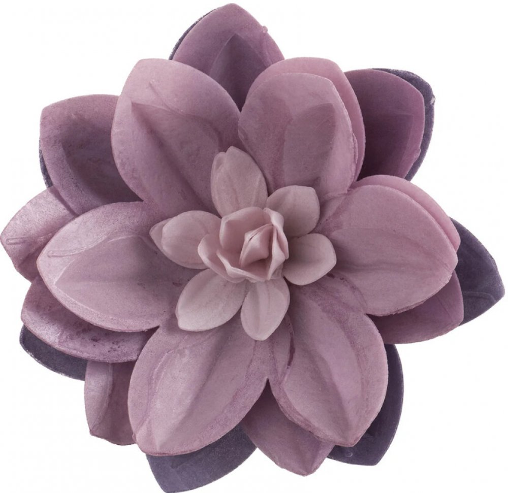 Jedlá dekorace na dort, fialová lilie Dekora je velký květ z jedlého papíru o průměru 14 cm. Fialová lilie dodá dortům a dezertům luxusní a slavnostní vzhled během chvilky. Díky své lehkosti dekorace nezatěžuje korpus a výborně drží tvar na polevách i krémech.