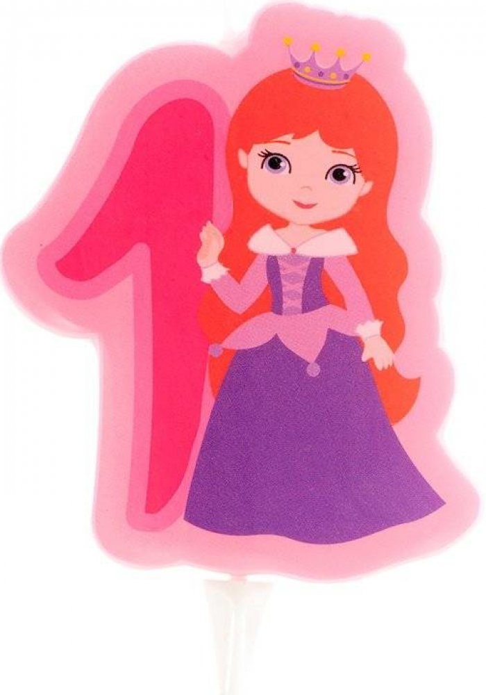 Svíčka na dort ve tvaru princezny s číslem 1. Výška 7 cm.Dortová svíčka ve tvaru princezny s číslem 1 měří přibližně 7 cm a má plastový zápich pro snadné a rychlé upevnění do dortu či muffinu. Může bý
