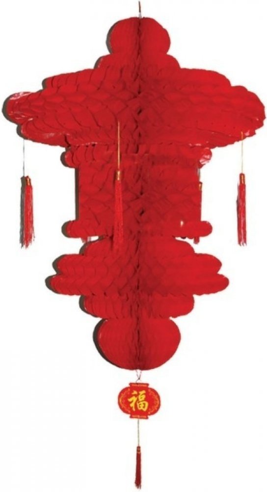 Párty dekorace - červená závěsná dekorace s čínskými motivy