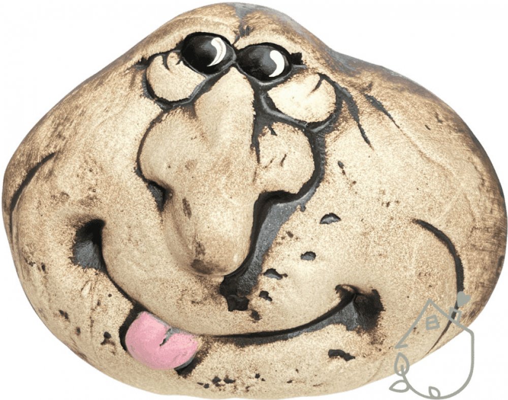 Tento keramický kámen je víc než jen zahradní dekorace. S roztomilým úsměvem se hodí na okenní parapet, balkon nebo zahradní skalku. Může se také schovat v bylinkovém záhonu a přinést radost do každého kouta vaší zahrady.