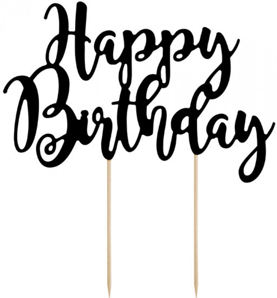 Dekorace na dort "Happy Birthday" ČERNÁ