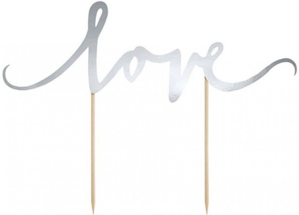 Dekorace na dort " love " stříbrná 17cm - Valentýn / Svatba - PartyDeco