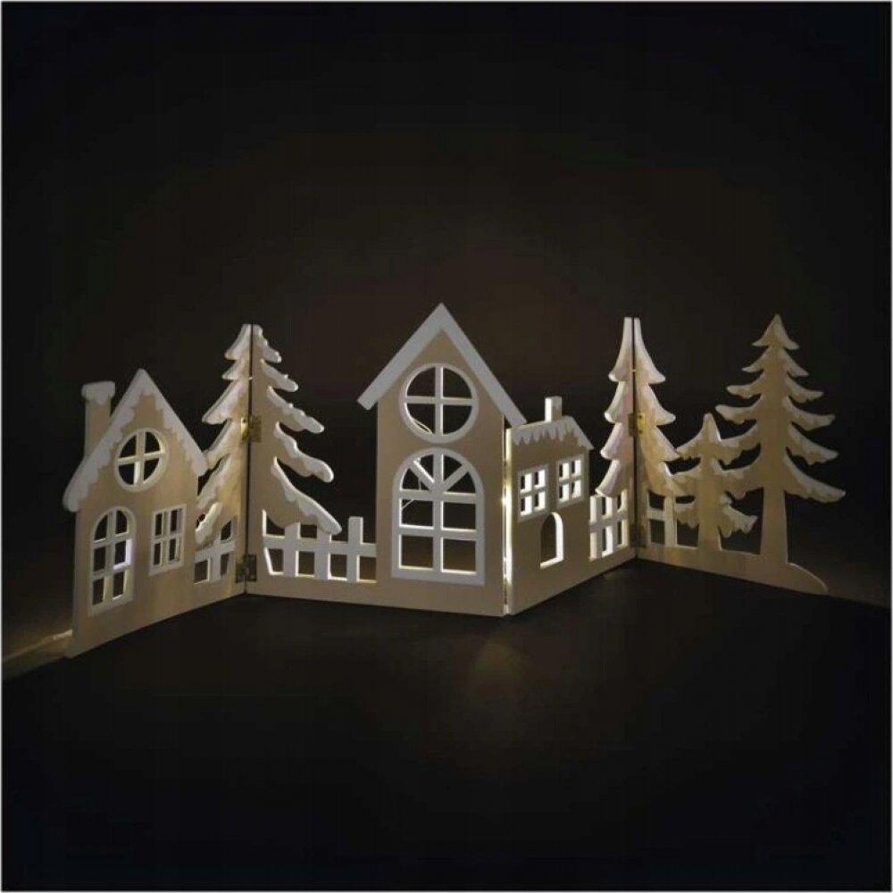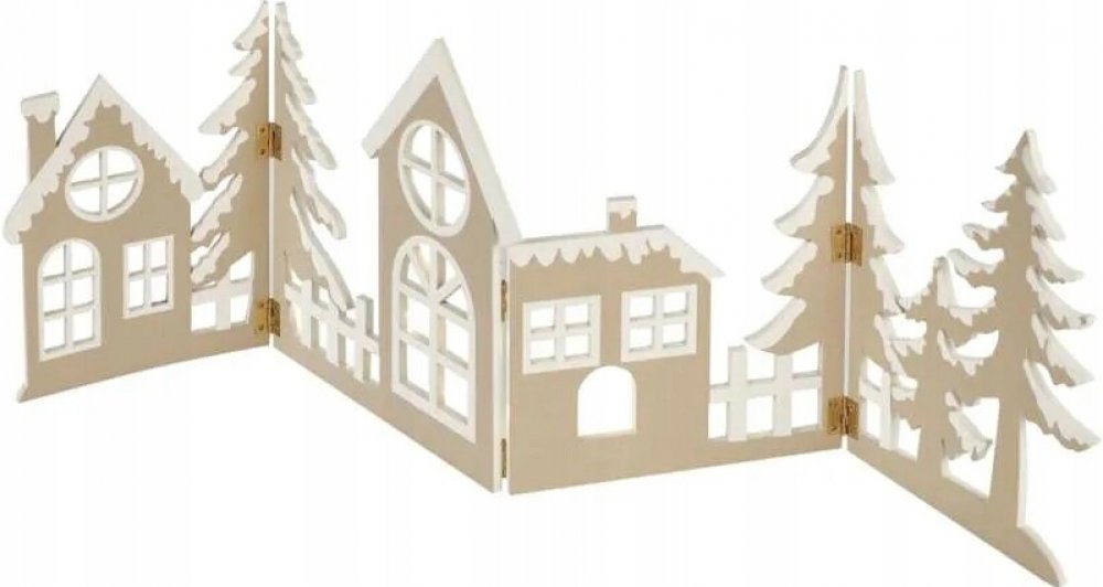 LED dekorace dřevěná - vesnička, 60 cm, 2x AA, teplá bílá, časovač