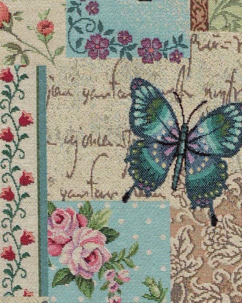 Gobelínová dekorační látka NATALI, motýlí patchwork. Složení dekoračky 60% polyester, 40% bavlna. Tkanina má šířku 280 cm. Dekorační látky jsou vhodné na podsedáky židlí, lavic, výrobu polštářů a k dekoračním účelům.