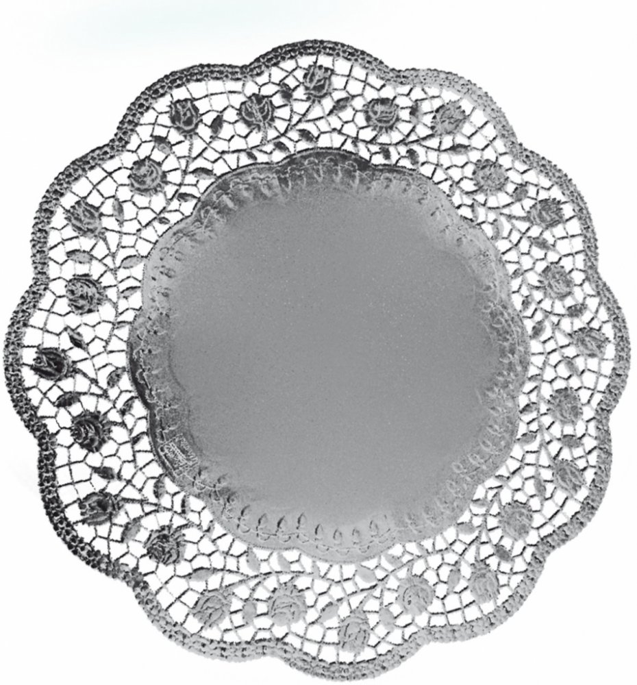 Dekorativní krajky kulaté, stříbrné pr. 36 cm (4 ks)