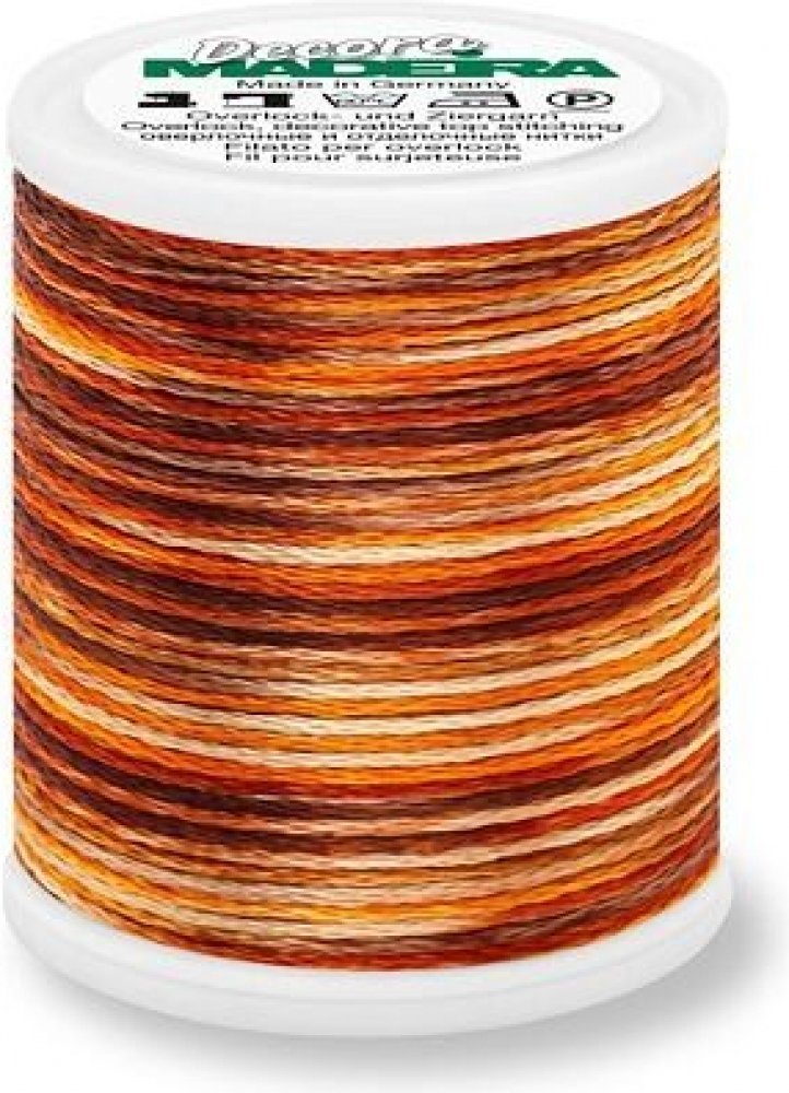 Dekorativní nit Madeira Decora č.6 (100 m) Objemná dekorativní příze určená pro ozdobné overlockové švy, Bobbin Work, ruční háčkování a ruční šití. Nit Decora 6 se nezpracovává strojní jehlou. Používá se do overlocku do horního smyčkovače nebo na šicím stroji pro již zmíněný Bobbin Work. Nit je vyrobena z vysoce kvalitní viskózy, která má dokonalý lesk, kterým tato bohatá nit vyniká. Při šití ozdobných stehů na overlocku vytvoříte neskutečně originální stehy, které podtrhnout u Vašich oděvů originalitu. Návin: 100 m Složení: 100% viskóza Údržba: