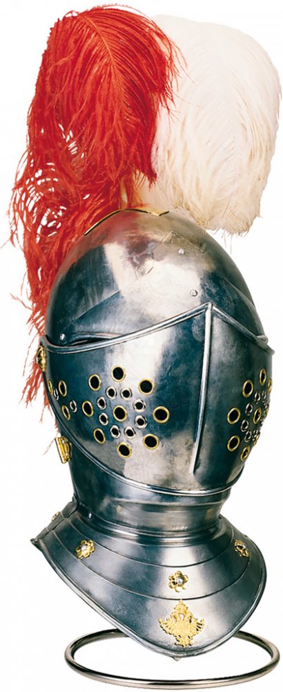 V 16. století se plátová zbroj dostala na svůj technický i estetický vrchol. Uzavřené přilby, jako je tato, se vyvinuly z dřívějších šalířů a armetů. Jejich účelem bylo poskytnout kompletní ochranu hlavy a krku. Burgundský dvůr byl v pozdním středověku a rané renesanci centrem módy a rytířské kultury, a tento styl ovlivnil zbrojíře po celé Evropě. Přilby se postupně stávaly nejen ochranným prostředkem, ale i symbolem postavení – čím zdobnější přilba, tím významnější pán. Tato replika odkazuje právě na tuto éru, kdy se zbroj stávala šperkem.