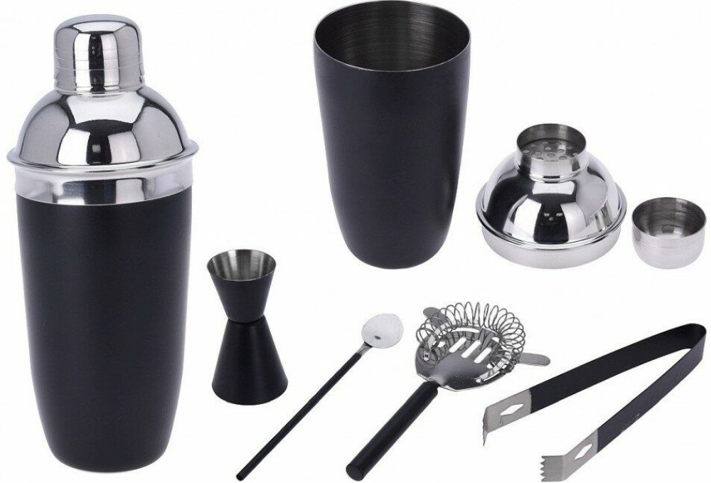 - kompletní barmanský set v atraktivním černo/nerezovém provedení- materiál: nerezová ocel- matný černý povrch, nerezové vnitřní části- kvalitní provedení, dlouhá životnost- vhodné do myčky nádobí, pro zachování dlouhotrvajícího dokonalého vzhledu se však doporučuje ruční mytí- kompletní sada 5 ks obsahuje:- 1x shaker na koktejly s víčkem: objem 0.5 l / výška 20.5 cm- 1x sítko pro cezení přímo ze shakeru - 1x míchací lžíce 20 cm- 1x oboustranná odměrka 9 x 5 cm- 1x kleště na led či ovoce 12 cm.
