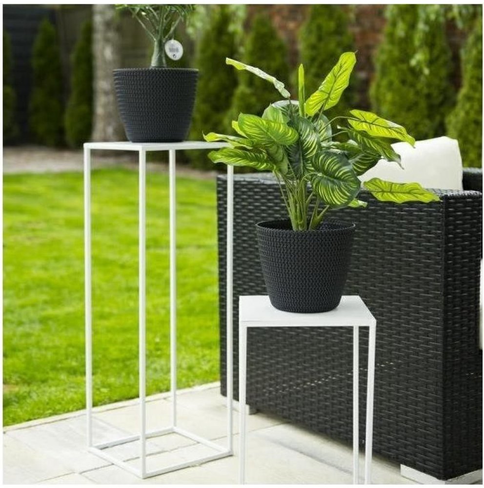 Prezentovaný držák na květináč je v bílé barvě. Rozměry: Výška: 70 cm Šířka: 24 cm Hloubka: 24 cm