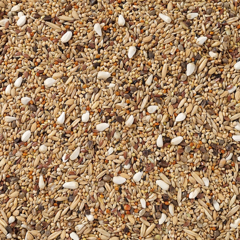 Složení: proso žluté, lesknice, kardi, proso bílé, proso japonské, semenec, proso červené, pohanka, niger, oves lámaný, lně...