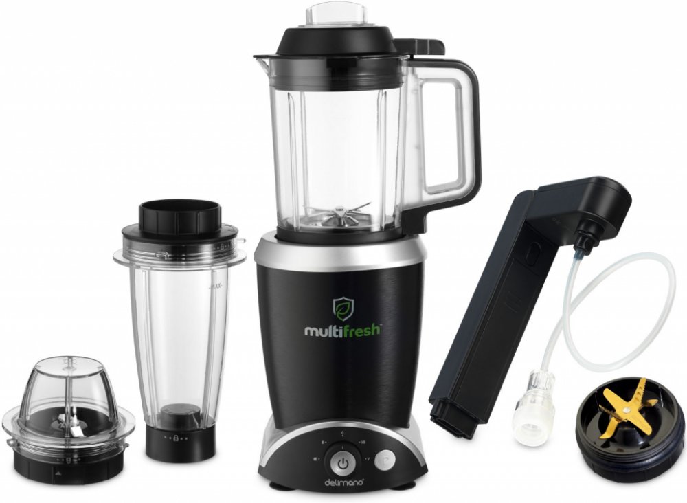 Delimano Multifresh přináší revoluci do každodenního mixování - je silným vakuovým přístrojem, který ochrání živiny a ještě mnohem více! Jde o inteligentní přístroj 5v1: vakuum mixér, klasický mixér, vakuovač, polévkovač a mlýnek.