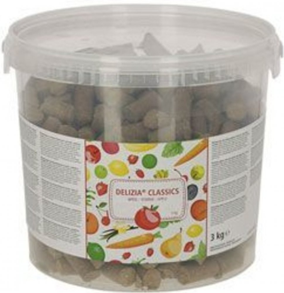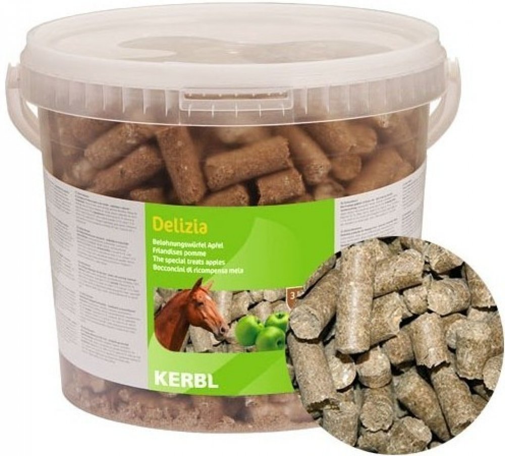Pochoutka pro koně DELIZIA jablko 3kg kbelík - Doplňkové krmivo pro koně. Chutná, přírodní odměna pro vašeho koně. - Zdravý způsob, jak odměnit svého koně - chutné a přírodní! Pamlsky jsou vhodné při výcviku koní, jako odměna či motivace.