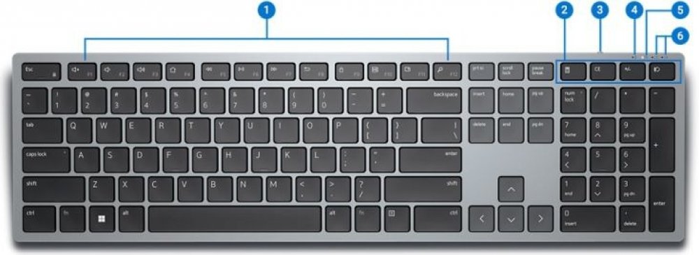 Získejte okamžitý přístup k často používaným aplikacím nebo funkcím pomocí 12 programovatelných kláves na klávesnici. Pracujte naplno s klávesnicí plné velikosti, která je dodávána s vyhrazenou numerickou klávesnicí, funkčními klávesami a naprogramovanými předvolbami. Stáhněte si software Dell Peripheral Manager a snadno spárujte svá zařízení, zkontrolujte stav baterie a připojení, programujte zástupce a aktualizujte na nejnovější firmware.