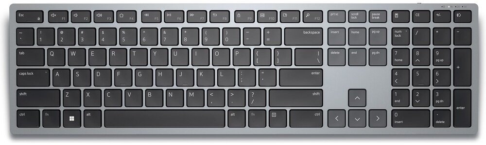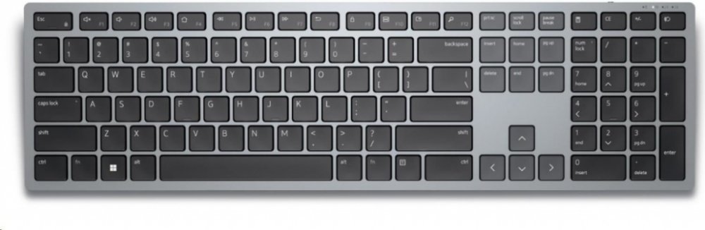 Promyšleně navržená tichá klávesnice je tenká a stylová s prvotřídním dojmem a povrchem v titanově šedé barvě. Nastavitelné naklápěcí nohy na klávesnici vám poskytují flexibilitu při práci v ideální poloze pro psaní.
