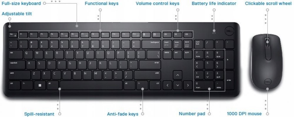 Bezdrátová klávesnice a myš nabízející jednoduchý a moderní design, který poskytuje spolehlivý výkon v libovolném prostředí. Sada nabízí pohodlí a výkonnost bezdrátového pracoviště a je navržena tak, aby vydržela i náročnou kancelářskou práci. K počítači je zapojíte pomocí bezdrátového USB přijímače (2,4 GHz). Napájení zajišťují 2× AAA a 1× AA baterie, které zaručí dlouhou výdrž (až 3...