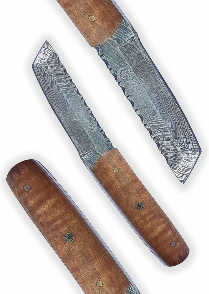 Menší nůž Dellinger miniTanto Walnut je velmi praktický lovecký nůž. Čepel tohoto loveckého nože je vyrobena z damaškové uhlíkové oceli, kdy vyšší obsah uhlíku přispívá k větší tvrdosti a odolnosti materiálu. Nůž není nerezový. Díky tomu je potřeba o čepel také více pečovat - pravidelná údržba, včetně vytření do sucha po použití a následném naolejování - tím minimalizujete riziko koroze. Rukojeť je vyrobená ze dřeva vlašského ořechu. Vlašskoořechové dřevo je tmavě hnědé s tmavšími pruhy. Toto dřevo je velmi odolné. Nůž je dodávaný s koženým pouzdrem.