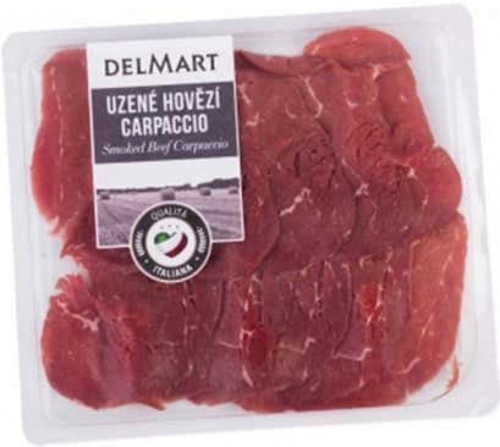 Cena se může v jednotlivých regionech lišit. -- Prosolené plátky uzeného vyzrálého hovězího masa s nízkým obsahem tuku, ochucené bylinkami a kořením. Dochuťte olivovým olejem, citronovou šťávou nebo balsamikovým octem, rukolou a parmezánem. Bez barviva zvýrazňovačů chuti. O Delmart Česká obchodní společnost, která věří, že dobré jídlo musí být vyrobeno z kvalitních a čerstvých potravin. Důležité j...