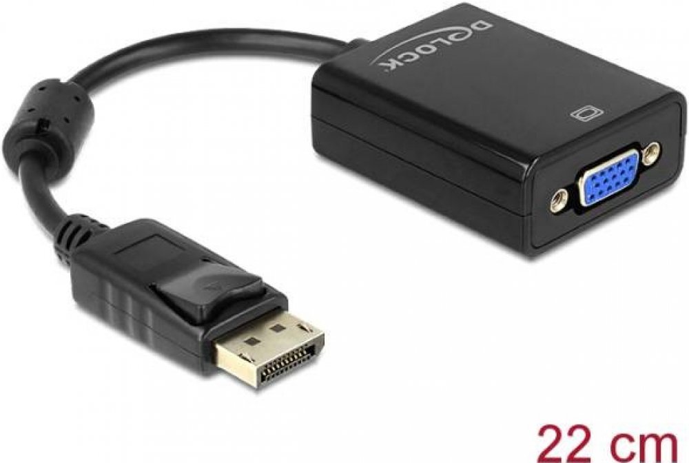 Tento adaptér od Delocku umožňuje připojení VGA monitoru k vašemu systému přes volné rozhraní Displayport. Specifikace • Konektor: 1 x Displayport 20 pinový samec > 1 x VGA 15 pin samice • Chipset: Analogix • Displayport 1.2 specifikace • VGA konektor se šroubovými maticemi • Rozlišení až WUXGA 1920 x 1200 @ 60 Hz (v závislosti an systému a připojeném hardware) • Standby detekce, standby vyvolává ...