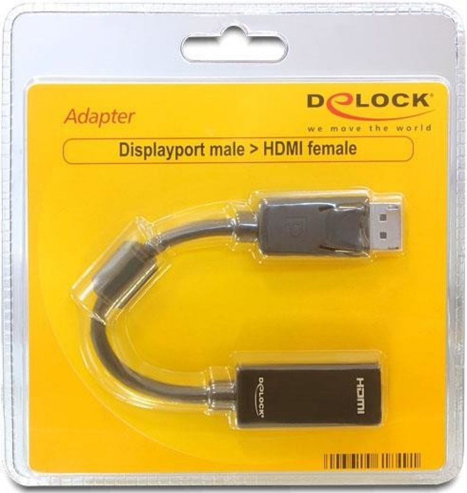 Displayport adaptér Delock umožňuje připojení HDMI zařízení (monitoru apod.) k vašemu PC. Specifikace • Displayport 20pin samec > HDMI 19 pinový samice • Displayport specifikace 1.1a • High Speed HDMI • Rozlišení až 1920 x 1200 a HDTV až 1080p • Standby detekce, standby vyvolává automaticky režim spánku • 1x feritové jádro • Délka kabelu cca. 12,5cm (bez konektoru) Systémové požadavky • Volný Disp...