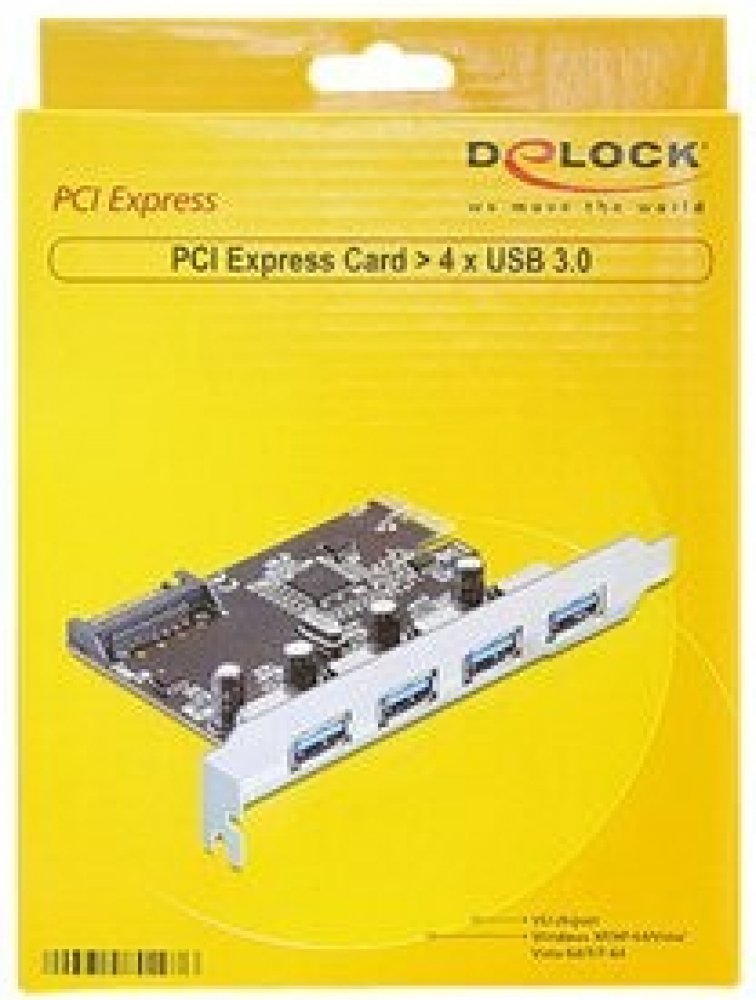 Karta Delock PCI Express rozšíří váš PC o čtyři externí USB 3.0 porty. Na kartu můžete připojit různá USB 3.0 zařízení, jako např. dokovací stanici, čtečku karet, externí