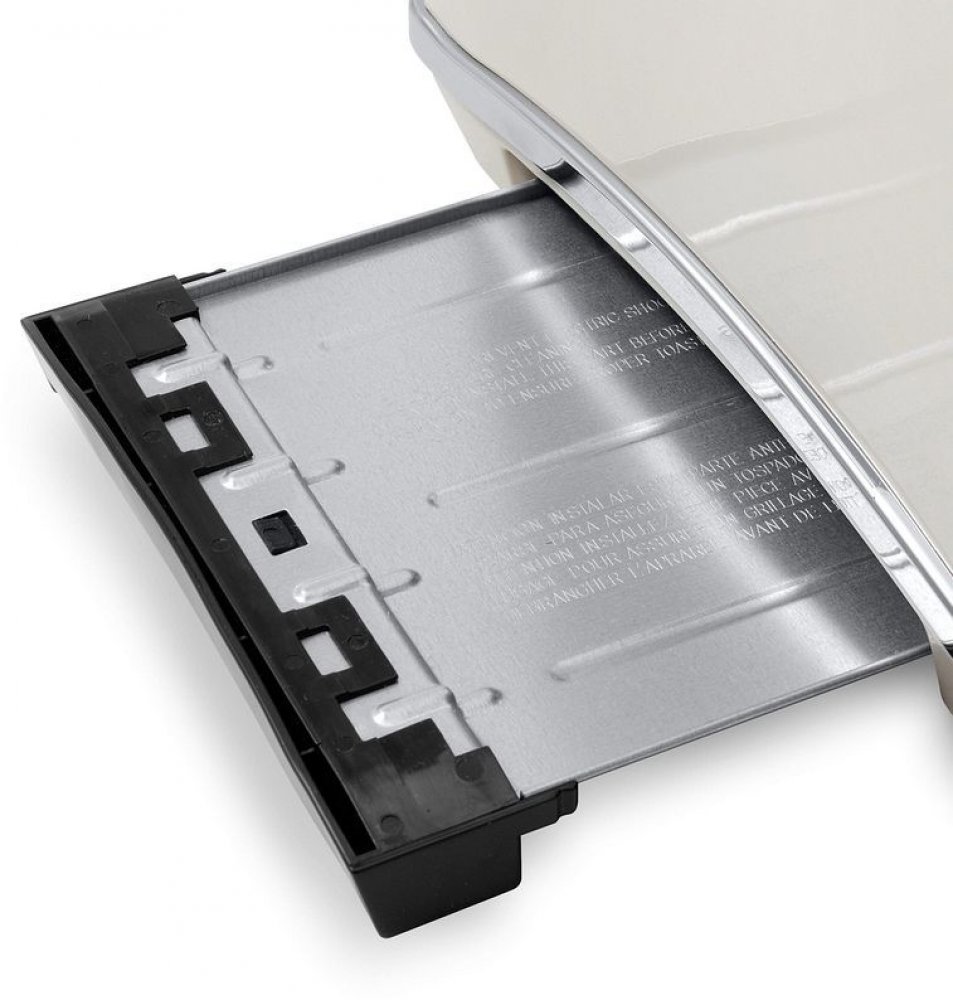 Výsuvná miska na drobky zajišťuje snadné čištění a systém zvedání toastů usnadňuje vyjmutí menších kousků pečiva bez rizika popálení.