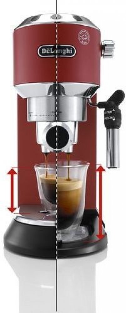 Celokovové tělo, matná povrchová úprava a embosované logo na odkapávacím tácku dodává unikátnímu kávovaru Dedica ještě více stylu.