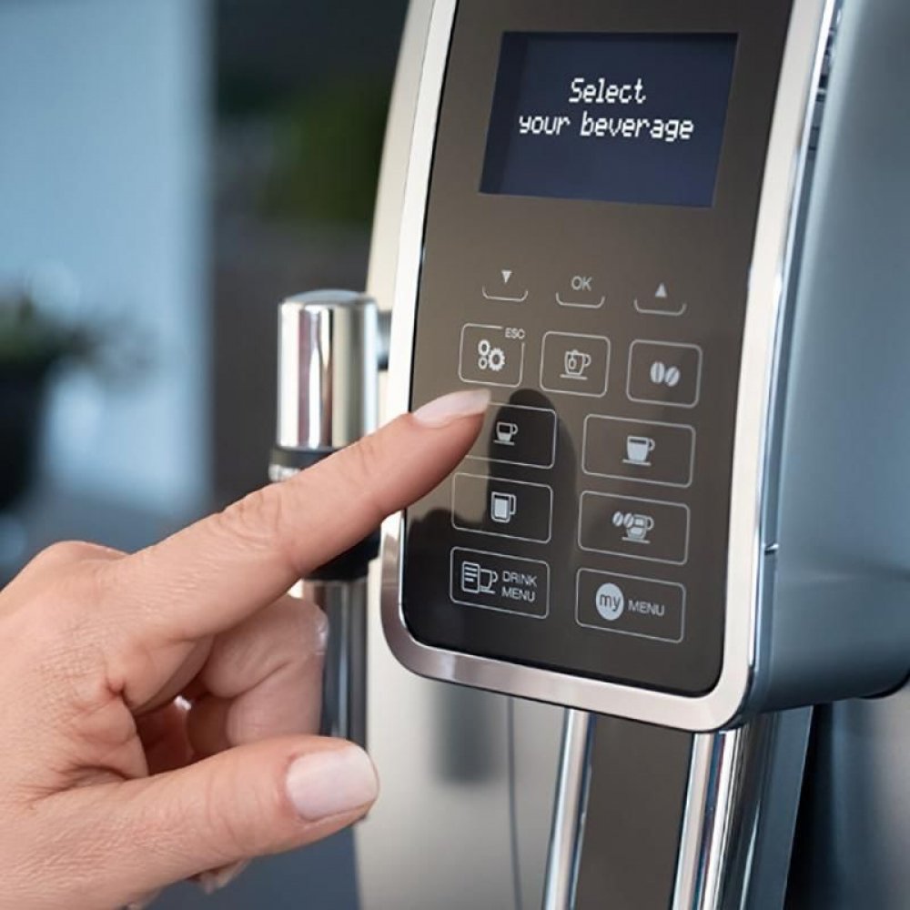 DeLonghi stříbrná 2.0 l dotykové 4 pro 3-4 osoby s manuální tryskou na páru 15 bar 0.7 m 300 g 300 g 5 porcí 1 s nádržkou na vodu 1450 W ocelové 5 9.33 kg 34.8 cm 23.6 cm 42.9 cm standardní