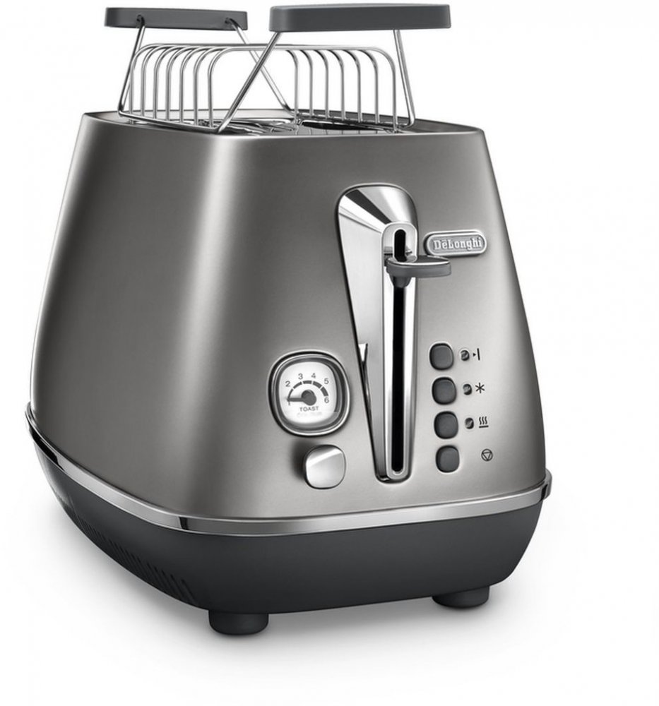 topinkovač • pro 2 ks topinek • 6 stupňů ohřevu • rozmrazování • opětovný ohřev pečiva • tlačítko STOP • světelná indikace provozu • rozpékač pečiva • vyjímatelný tác na drobky • tlačítkové ovládání • příkon 900 W