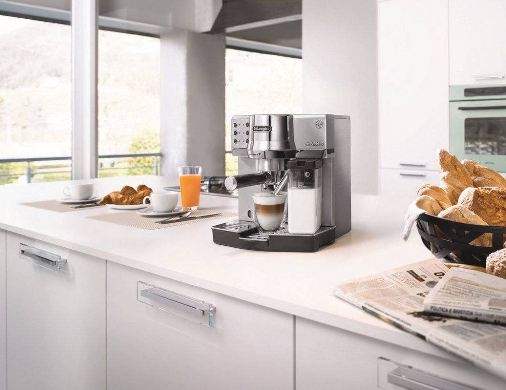 Automatické nebo pákové espresso? Přístroj DeLonghi EC 850 připraví kávu díky zabudovanému termobloku jako profesionální stroje.