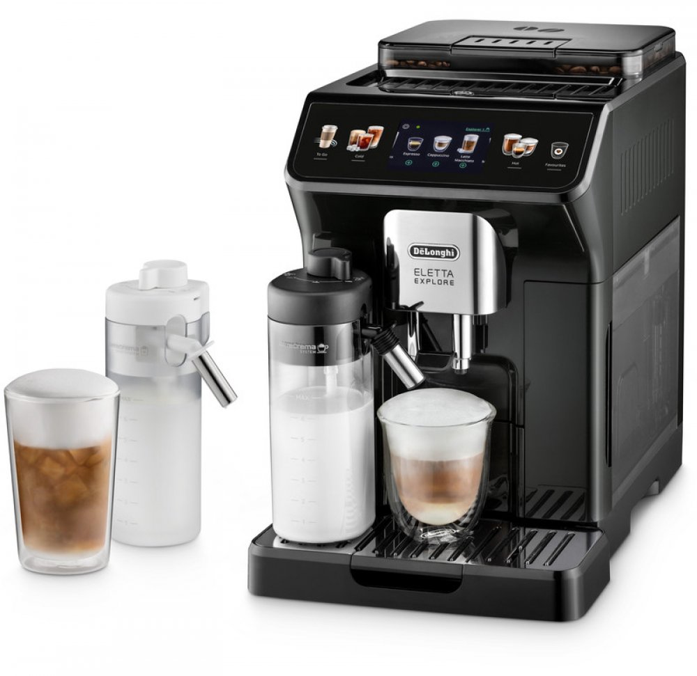 Šálek své oblíbené kávy si vychutnáte nejlépe s automatickým kávovarem De'Longhi ECAM 450.55.G Eletta Explore. Inovativní kávovar vám nabídne 40 druhů horkých nebo ledových nápojů, které připravíte jediným stisknutím. Snadné ovládání je zajištěno barevným intuitivním dotykovým displejem.