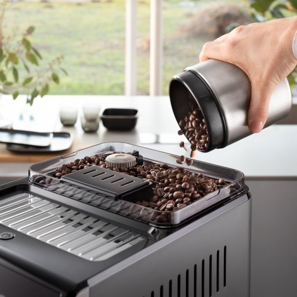 DeLonghi černá/stříbrná 1.8 l dotykové 40 pro 3-4 osoby s integrovanou nádobou na mléko 19 bar 300 g 300 ml 14 porcí 143.0 mm 1 barevný TFT displej pro běžné šálky s nádržkou na vodu 1450 W ocelové 13 11.4 kg 38.5 cm 26 cm 45 cm se snadnou údržbou 4 standardní testováno na rostlinné mléko
