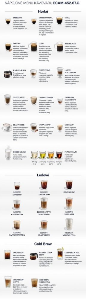 DeLonghi šedá dotykové s integrovanou nádobou na mléko 19 bar 1.8 l 300 g 14 porcí 160 mm barevný TFT displej pro latté sklenice a termohrnky s nádržkou na vodu 1450 W ocelové 13 11.3 kg 38.5 cm 26 cm 45 cm s ruční údržbou 4 50 testováno na rostlinné mléko pro 3-4 osoby standardní
