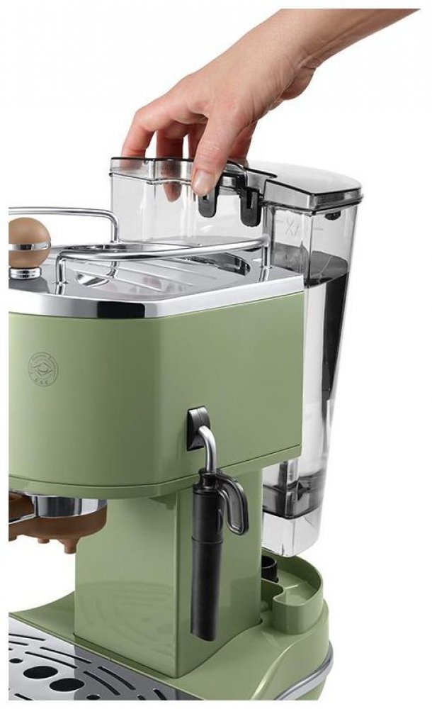 Vintage je definována jako kvalita a hodnota předmětu z minulosti, který se stal předmětem kultu a touhy. Duch minulosti ožil v exkluzivní verzi vysokotlakého kávovaru Icona Vintage, který uchvátí milovníky designu svou jedinečnou olivovou barvou doplněnou hnědými a chromovými detaily. VYJÍMATELNÁ NÁDRŽKA NA VODU SYSTÉM CAPPUCCINO OHŘÍVÁNÍ ŠÁLKŮ ADAPTÉR FILTRU CREMA AUTOMATICKÉ VYPÍNÁNÍ VYJÍMATELNÁ NÁDRŽKA NA VODU Vyjímatelná nádrž na vodu umožňuje snadné plnění a čištění. SYSTÉM CAPPUCCINO Pomocí speciální trysky mísící páru, vzduch a mléko můžete připravit krémovou pěnu pro cappuccino a další mléčné kávy. OHŘÍVÁNÍ ŠÁLKŮ Kávovar je vybaven nahřívací deskou pro nahřívání šálků, která zajišťuje, že káva po naplnění zůstane v dokonalé teplotě. ADAPTÉR CREMA FILTRA "2 v 1": nový adaptér crema filtru je vhodný pro mletou kávu i kávové kapsle (ESE systém) AUTOMATICKÉ VYPÍNÁNÍ Ekologická funkce automatického vypnutí kávovaru po 9 minutách po posledním spaření pomáhá šetřit energii a snižuje náklady na používání kávovaru. Příprava dvou káv současně: Ano; Tlak: 15 bar; Výkon: 1100 W; Šířka: 26 cm; Nahřívání šálků: Ano; Kapacita: 1,4 l; Druh kávy: Možnost použití kávy z kapslí; Barva: Olivová; Výška: 31,5 cm; Programy: vaření cappuccina, vaření espressa, vaření ristretto; Typ kávovaru: Filament; Hloubka: 29 cm; Napěnění mléka: Ano