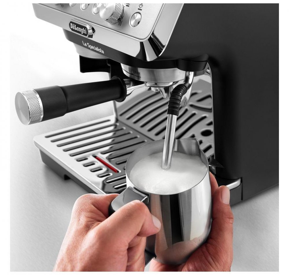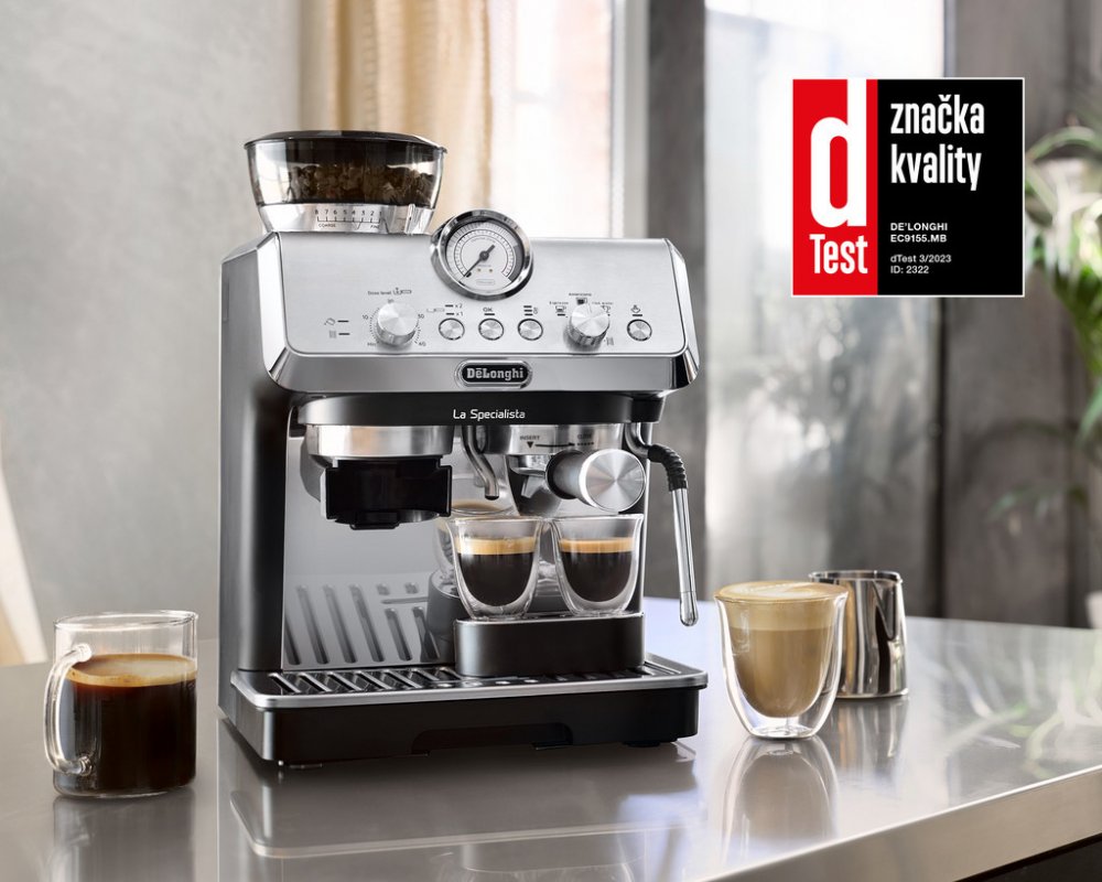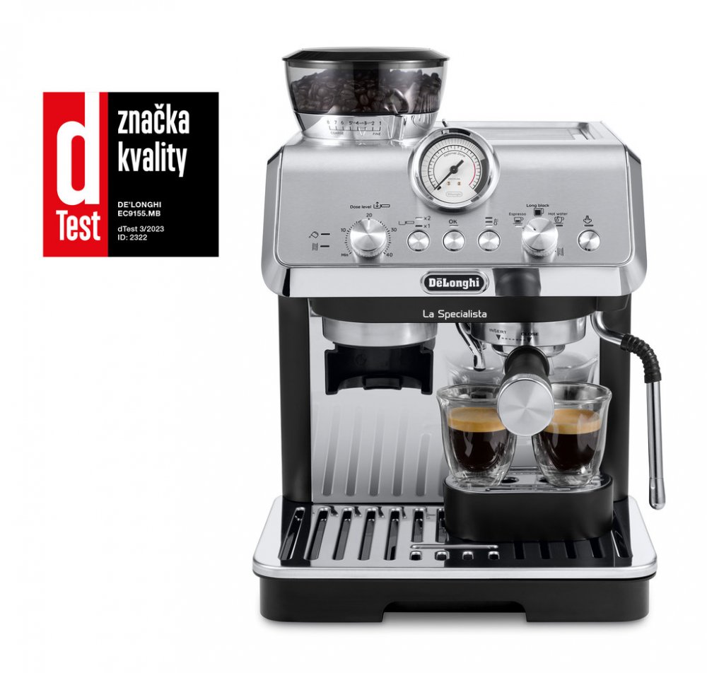 Vychutnejte si pravý baristický zážitek u sebe doma a užijte si tradiční proces přípravy kávy s pákovým kávovarem De'Longhi La Specialista ARTE EC9155.MB. Kávovar je vybaven odolným ocelovým mlýnkem, který perfektně namele kávová zrna. K dispozici je vám také sada pro precizní pěchování kávy. Pomocí trysky na pěnění mléka si můžete připravit mléčné kávové nápoje s krémovou pěnou. Kávovar nabízí 2 přednastavené recepty - espresso a americano. Přístroj se snadno udržuje, nemusíte se bát zdlouhavého čištění.