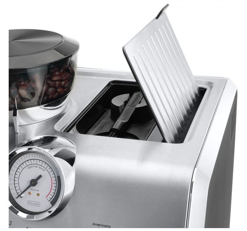 Tlak čerpadla je 15 barů. Analogový ukazatel zobrazuje optimální tlak při extrakci kávy. Nastavit si můžete i tvrdost vody. Přístroj vám sám ohlásí, kdy je potřeba jej odvápnit. Poté stačit otočit kolečkem pro odvápňovací proces, přidat čistící prostředek EcoDecalk a kávovar spustí automatický odvápňovací program.