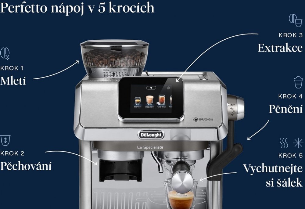 do domácnosti, příkon 1450 W, tlak 15 bar, materiál kov, objem nádržky na vodu 1,7 l, automatické vypnutí, s funkcí horké vody, možnost nastavení oblíbených nápojů, možnost přípravy dvou šálků zároveň, displej, nádoba na vodu, s mlýnkem, napařovací tryska, signalizace potřeby odvápnění / čištění, režim úspory energie, nastavitelná tvrdost vody, automatické čištění mléčných okruhů a kontrola výměny...