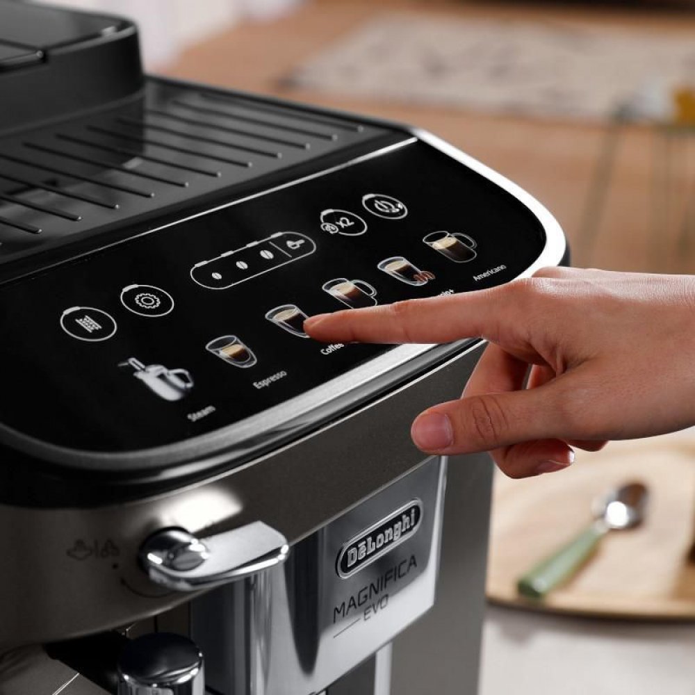 Magnifica Evo spojila zkušenosti, know-how a Technologie společnosti De'Longhi pro ty nejlepší výsledky v šálku. Od zrnka kávy do vašeho šálku. Speciálně navržený pro zákazníky, kteří vstupují do světa plnoautomatických kávovarů a hledají moderní design a přípravu nápoje jedním stisknutím tlačítka. Nový plnoautomatický kávovar od společnosti De'Longhi uspokojí všechny chuťové požadavky díky uživatelsky přívětivému rozhraní.