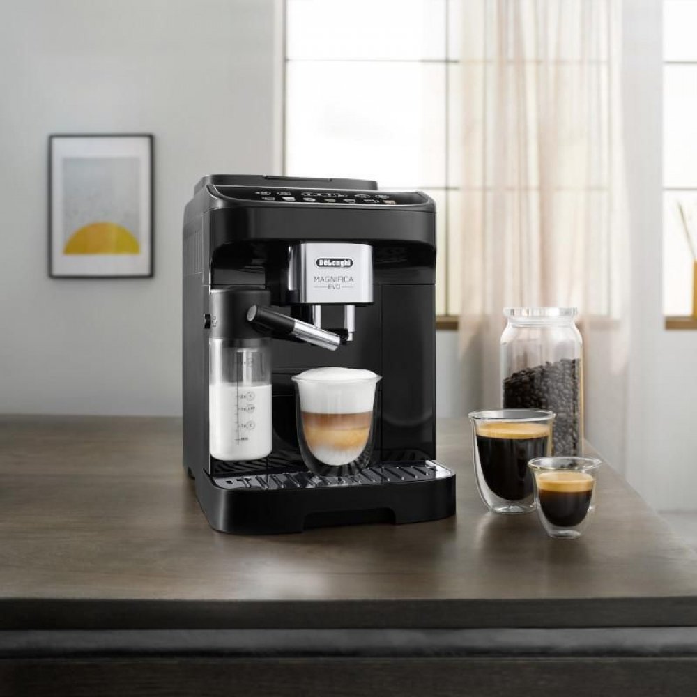 Objevte dokonalost domácí kávy s plně automatickým kávovarem DeLonghi Magnifica Evo v elegantním černém provedení. Tento prémiový model ECAM 290.61.B kombinuje pokročilou technologii s intuitivním ovládáním, díky čemuž si můžete vychutnat profesionální kávové speciality přímo ve vaší kuchyni.