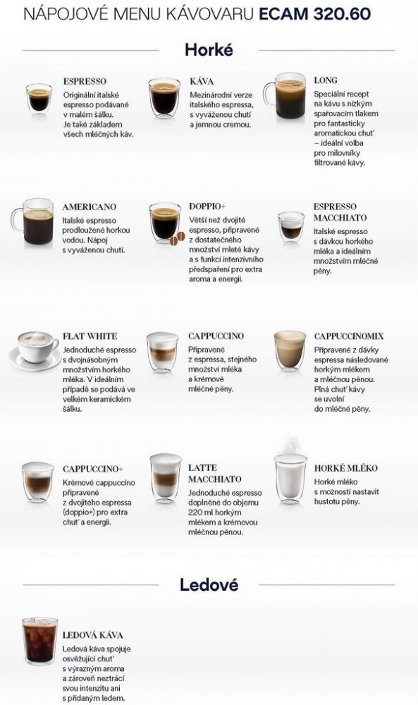 Zřejmě záměrné "mlžení" o rozdílech mezi jednotlivými variantami kávovarů De Longhi ==> Před nákupem jsme složitě studovali, jaké druhy kávy ten který model umí vyrobit. Po koupi jsme zjistili, že všechny umí prakticky všechny varianty kávy, liší se jen tím, zda je můžete přímo vybrat na displeji nebo si je musíte složitěji pokaždé nastavit a zda mají i přípravu nápojů s mlékem. To ale po pár kávách není problém. Kdo chce pohodlí nebo se nechá zmást jako my, ten si připlatí. Takže jsme si mohli koupit De Longhi kávovar na cca 10 tisíc místo 16 tisíc, vařil by stejné kafe s nižším komfortem. Ale i dnes bych si koupil vyšší model - příprava kávy v něm je pohodlnější.